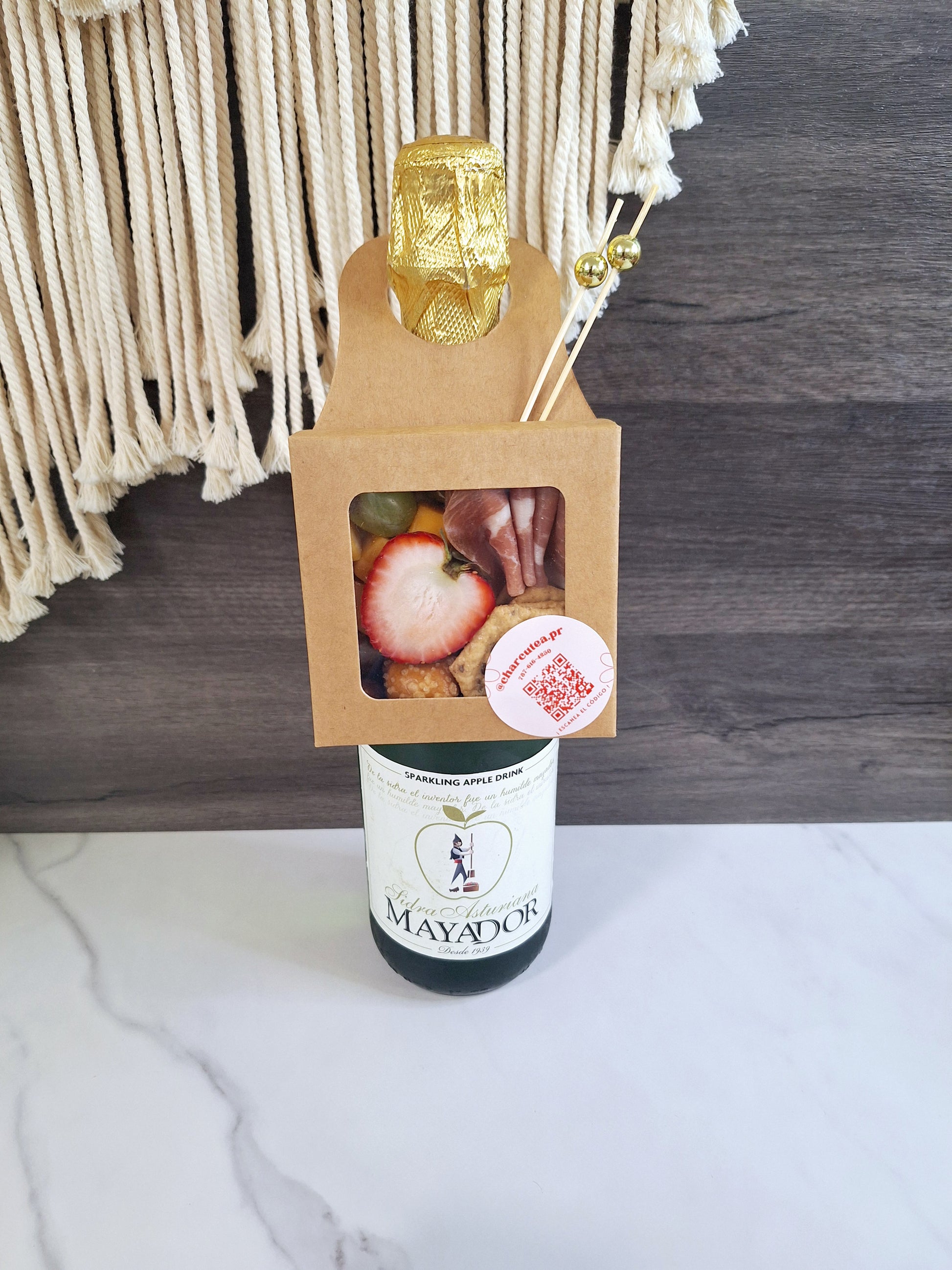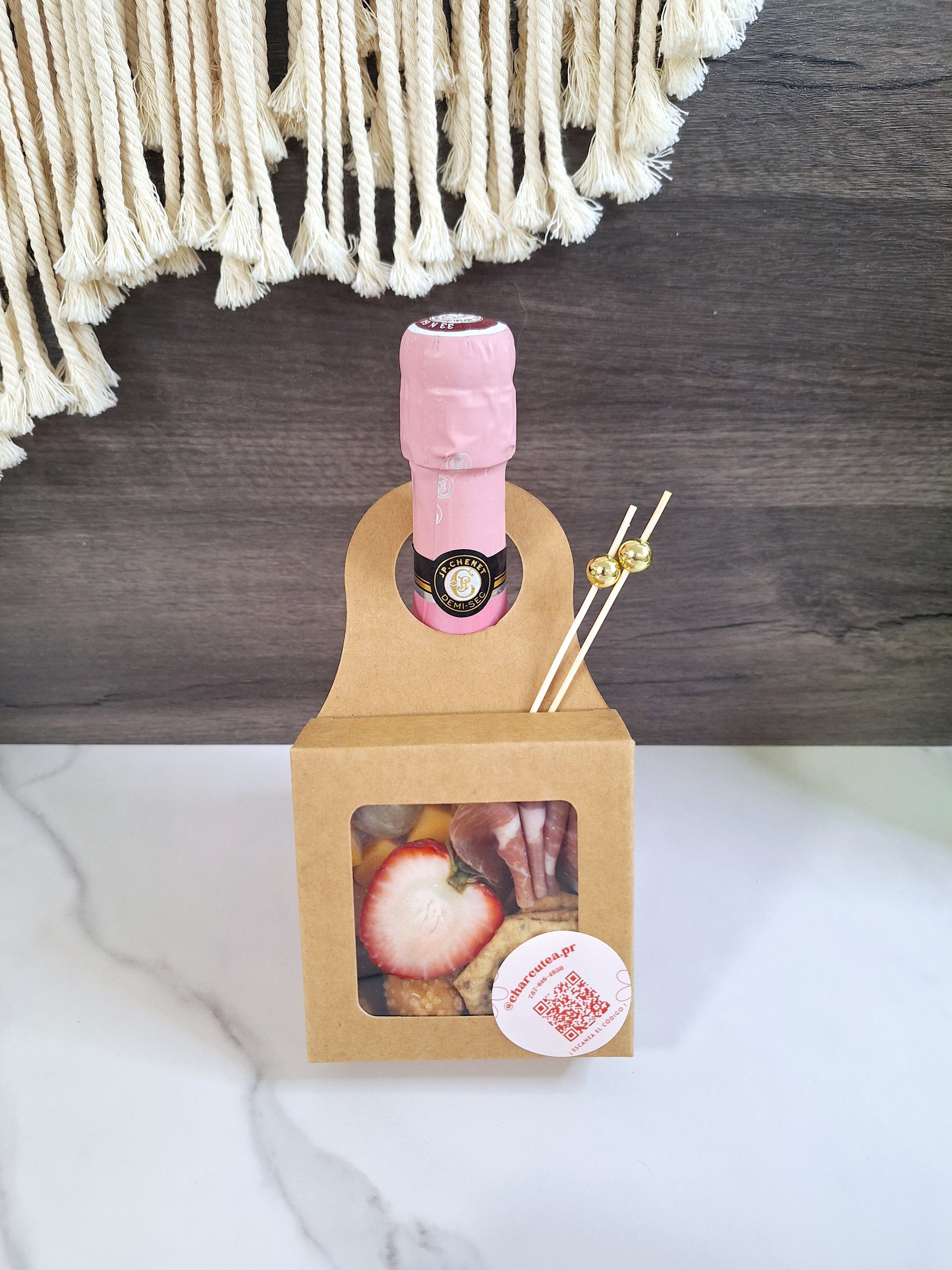 Contienen: 1 estilo de jamón, 1 estilo de queso, 2 frutas, nueces, 1 snack y dulce. Los diseños varían según disponibilidad de productos. Opción a cotizar con botella de jugo, café, sangria, vino por costo adicional